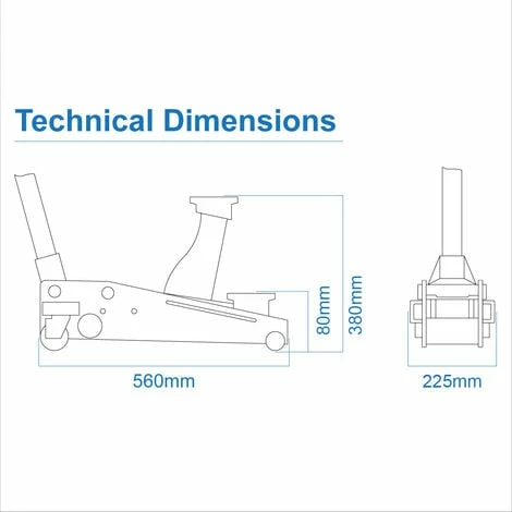 The Wolf 2.25 tonne low profile trolley jack is ideal for getting under cars with low ground clearance. Its 80-380mm (dims are without rubber pad, add an extra 5mm if the pad is used) lifting range makes it ideal for a number of different vehicles and the rubber contact pad supplied will prevent any chassis damage.